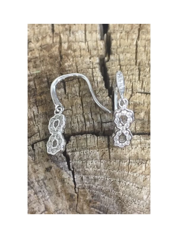 Pendientes con cierre hippie en plata y un infinito colgando con circonitas blancas de 0.70mm