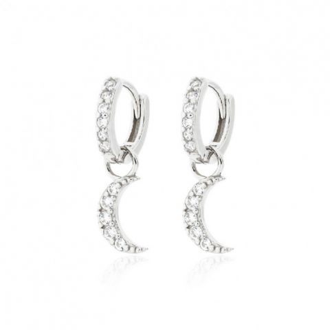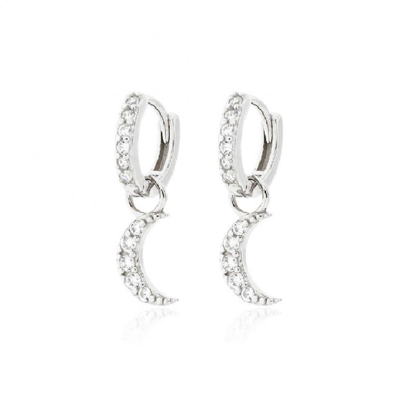 Aros de Plata con una Luna Bañados en Oro y Circonitas