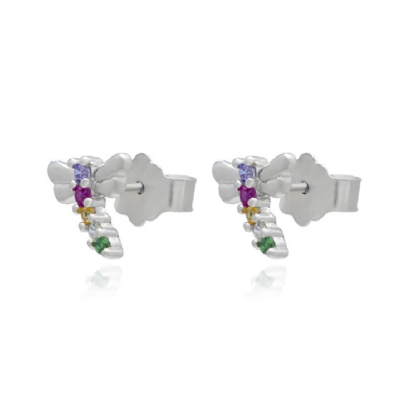 Pendientes de Plata o con Baño de Oro en forma de Libélulas con circonitas de colores. Tamaño 7mm