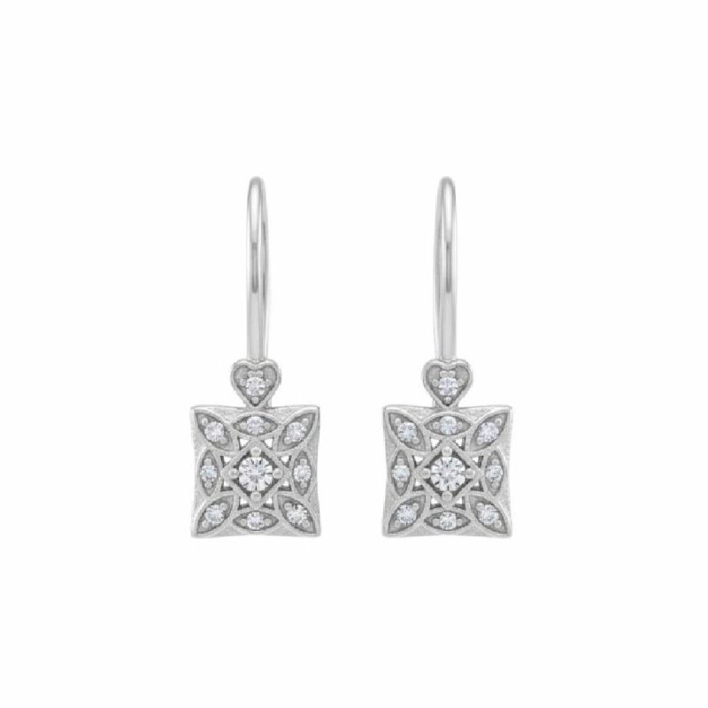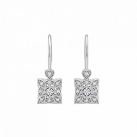 Pendientes de Plata en forma Cuadrada con Circonitas y cierre de clip